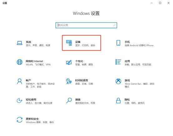2. win10打開設置-點擊設備-點擊打印機和掃描儀