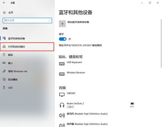 3. 添加打印機和掃描儀,因為是直接連接電腦的,一般情況下會直接掃描到打印機,然后點擊掃描出來的打印機直接安裝即可